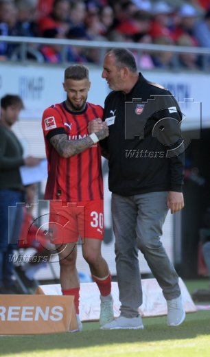 v.l. Niklas Dorsch (Heidenheim), Trainer Frank Schmidt (Heidenheim)