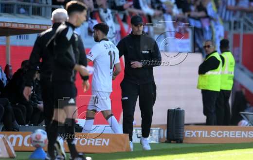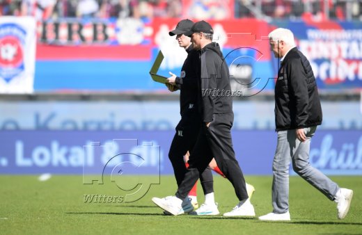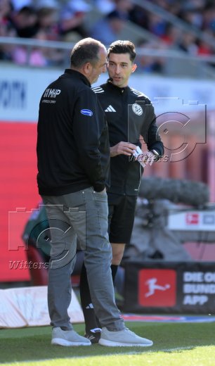 v.l. Trainer Frank Schmidt (Heidenheim), Vierter Offizieller Florian Badstuebner