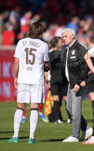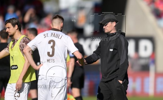 v.l. Karol Mets (St. Pauli), Trainer Alexander Blessin (St. Pauli)