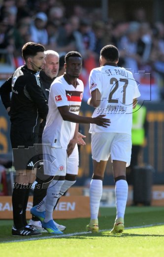 v.l. Danel Sinani (St. Pauli), Trainer Alexander Blessin (St. Pauli)