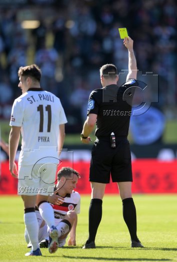 Schiedsrichter Felix Zwayer zeigt Martijn Kaars (St. Pauli) die gelbe Karte