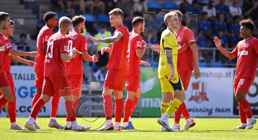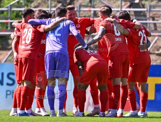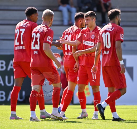 0:1 Tor, Jubel, v.l. Torschuetze Andreas Hountondji, Louis Oppie, Mathias Pereira Lage Arkadiusz Pyrka, Danel Sinani (St. Pauli)