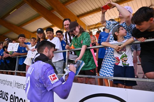 Torwart Nikola Vasilj (St. Pauli) schreibt Autogramme