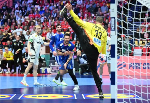 v.l. Aymeric Minne (Frankreich), Torwart Andreas Wolff (Deutschland)
