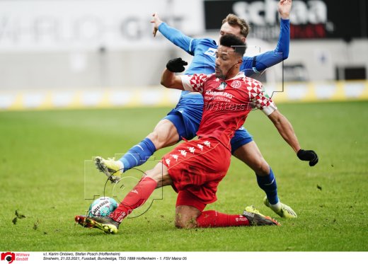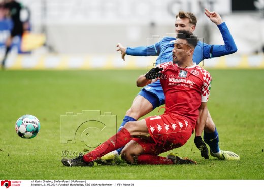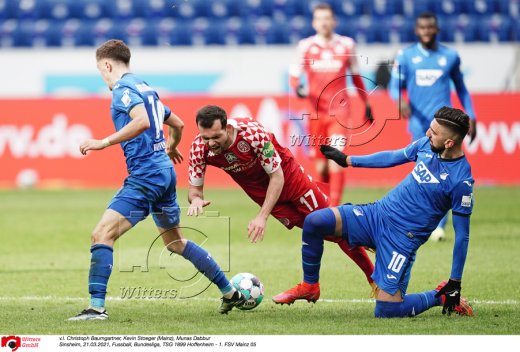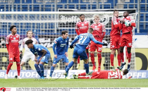 Sinsheim, 21.03.2021, Fussball, Bundesliga, TSG 1899 Hoffenheim - 1. FSV Mainz 05