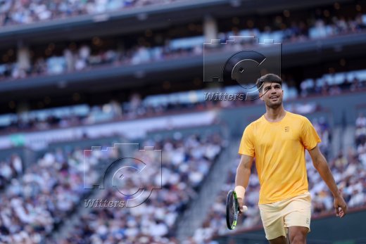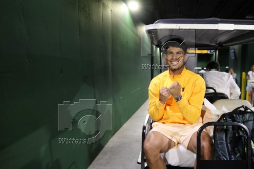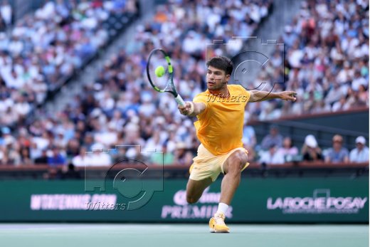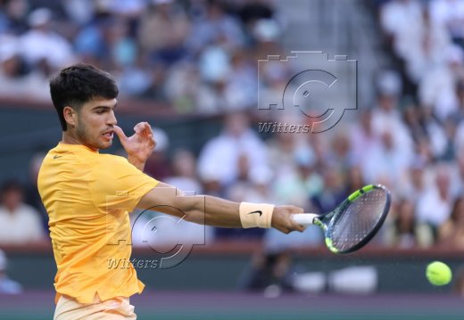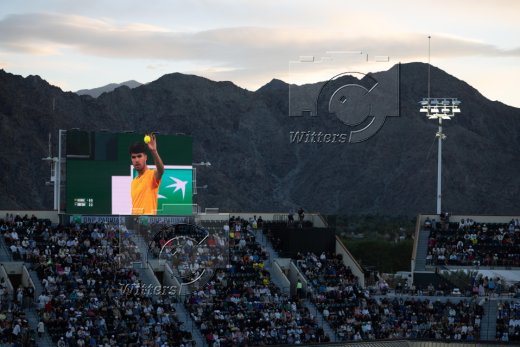 Carlos Alcaraz (Spanien) auf der Anzeigetafel im Indian Wells Tennis Garden