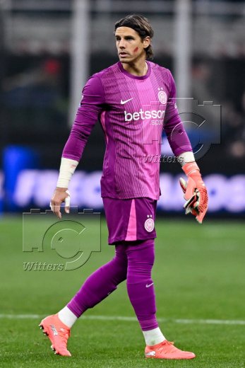Torwart Yann Sommer (Inter), roter Fleck auf der Wange, als Zeichen gegen Gewalt an Frauen