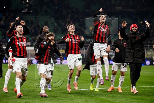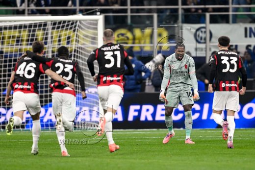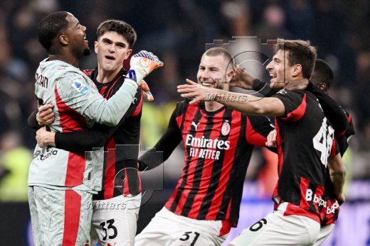 Schlussjubel v.l. Torwart Mike Maignan, Davide Bartesaghi, Strahinja Pavlovic, Matteo Gabbia (AC Mailand)