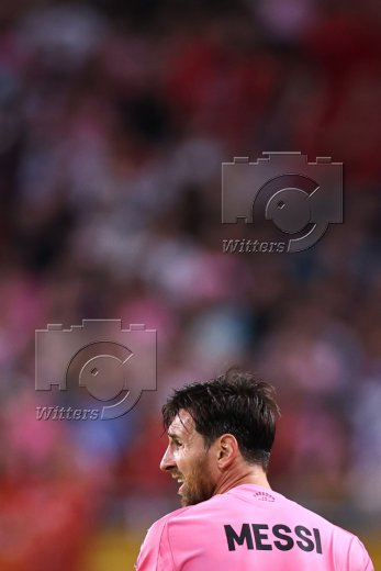 Lionel Messi (Miami) mit den Schiedsrichtern
