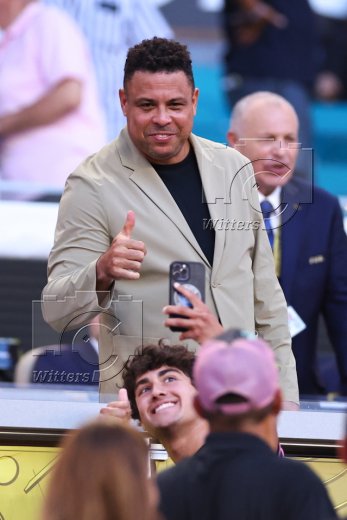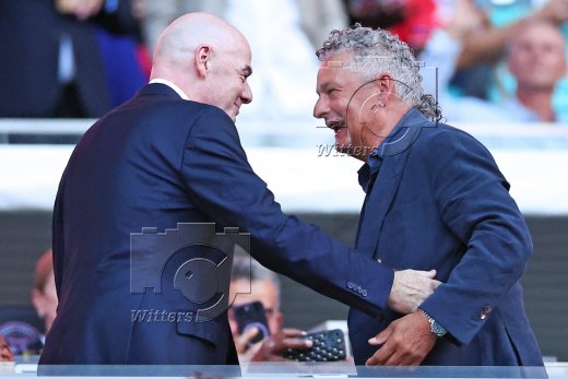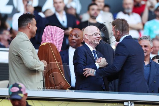 v.l. Ronaldo (Brasilien), FIFA-Praesident Gianni Infantino, David Beckham (England, Miteigentuemer Inter Miami)