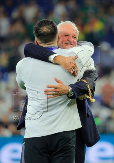 Schlussjubel, v.l. Trainer Graham Arnold, Mohanad Ali (Irak)
