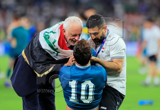 Schlussjubel Trainer Graham Arnold (Irak, r.)