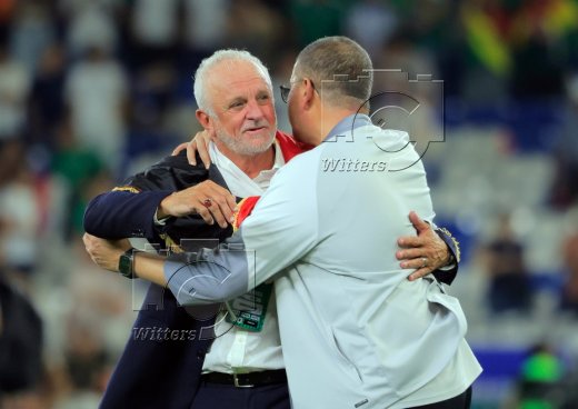 Schlussjubel Trainer Graham Arnold (Irak, l.)