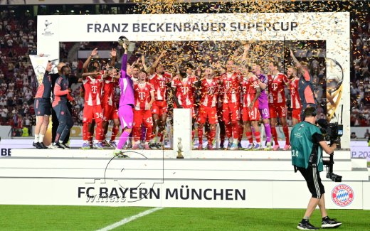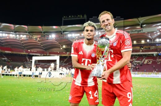 Franz Beckerbauer Supercup 2025, Sieger FC Bayern Muenchen, v.l. Luis Diaz, Harry Kane mit Pokal