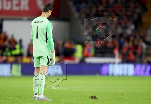 eine Ratte auf dem Spielfeld, Torwart Thibaut Courtois (Belgien)