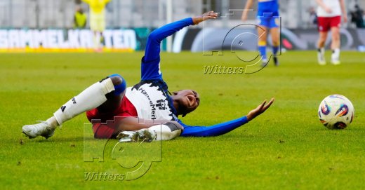 v.l. Torfrau Lea Paulick (HSV), Pauline Machtens, Annaleen Boehler (HSV, rote Karte)