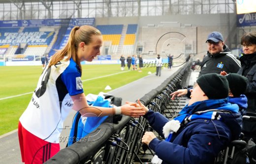 v.l. Pauline Machtens, Paulina Bartz (HSV) bei den Fans