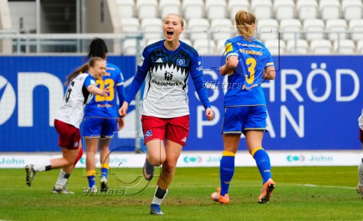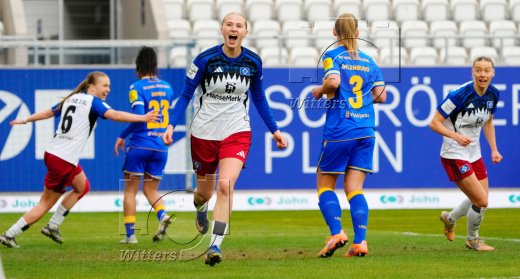 1:1 Tor, Jubel, v.l. Torschuetze Paulina Bartz, Sophie Hillebrand (HSV)