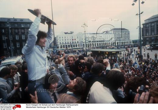 Kevin Keegan mit Schale auf dem Hamburger Rathausmarkt
