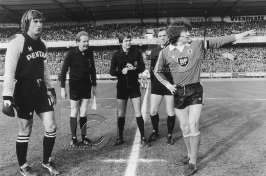 v.l. Torwart Dieter Burdenski (Bremen), Schiedsrichter Karl-Josef Assenmacher (M.), Kevin Keegan (HSV)
