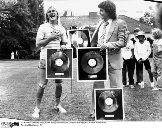 v.l. Komiker Otto Waalkes, Kevin Keegan ueberreicht Goldene Schallplatte, Platin Schallplatten