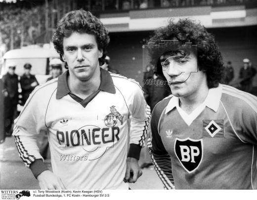 v.l. Tony Woodcock (Koeln), Kevin Keegan (HSV)