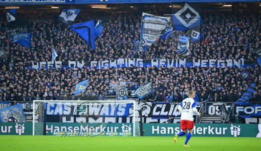 Fans HSV mit Transparent ''Keep on Fighting, Kevin Keegan'' nach Bekanntwerden von dessen Krebserkrankung