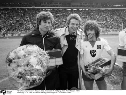 Verabschiedung v.l. Torwart Juergen Stars, Praesident Dr. Wolfgang Klein, Kevin Keegan (HSV)