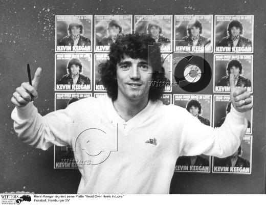 Kevin Keegan signiert seine Platte "Head Over Heels In Love"