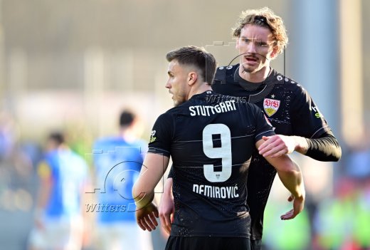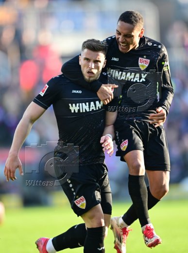 2:2 Jubel v.l. Torschuetze Ermedin Demirovic, Nick Woltemade (Stuttgart)