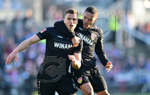 2:2 Tor, Jubel, v.l. Torschuetze Ermedin Demirovic, Enzo Millot (Stuttgart)