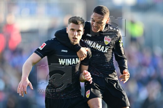 2:2 Tor, Jubel, v.l. Enzo Millot, Torschuetze Ermedin Demirovic (Stuttgart)