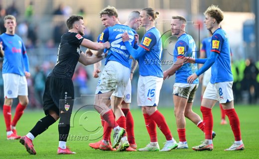 Streit nach Abpfiff v.l. Ermedin Demirovic (Stuttgart), Lasse Rosenboom (Kiel), Marvin Schulz, Lewis Holtby, Finn Porath