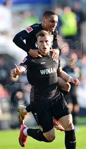 2:2 Jubel v.l. Torschuetze Ermedin Demirovic, Enzo Millot (Stuttgart)