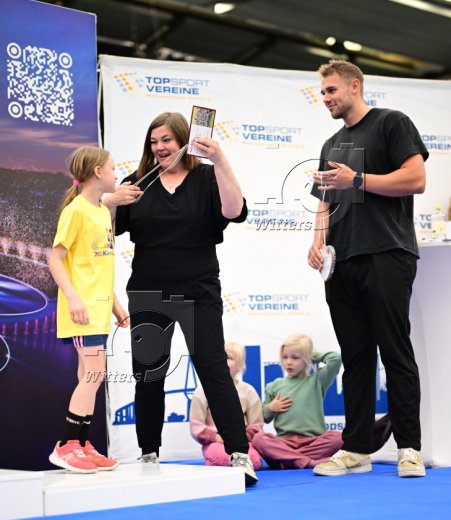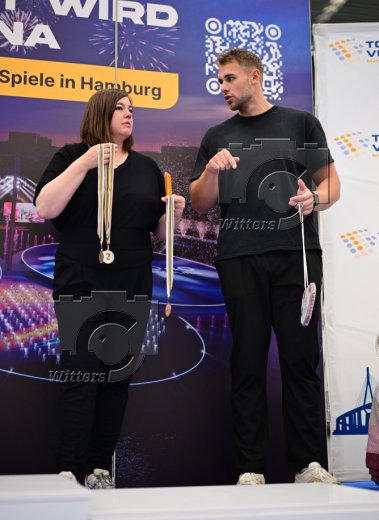 Siegerehrung mit Mika Sosna (Diskus) und Katharina Fegebank (Zweite Buergermeisterin Hamburg und Senatorin fuer Umwelt, Klima, Energie und Agrarwirtschaft)