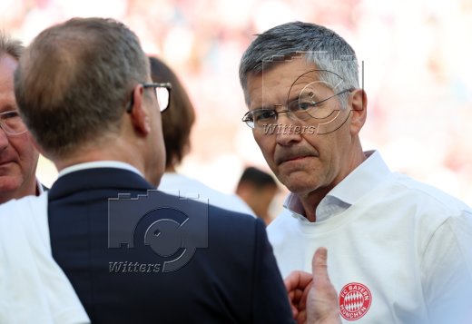 FC Bayern Muenchen Deutscher Meister 2023, v.l. DFL-Praesidiumsmitglied Jan-Christian Dreesen, Praesident Herbert Hainer (Bayern)