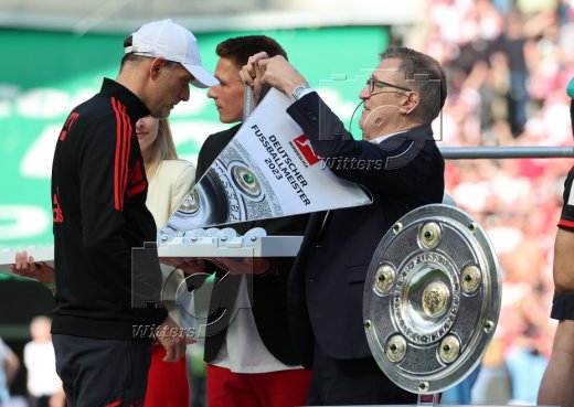 FC Bayern Muenchen Deutscher Meister 2023, v.l. Trainer Thomas Tuchel (Bayern), DFL-Praesidiumsmitglied Jan-Christian Dreesen