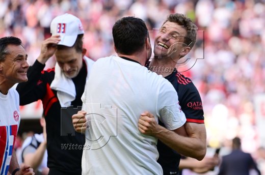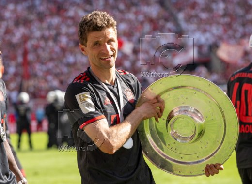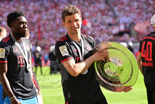 FC Bayern Muenchen Deutscher Meister 2023, Thomas Mueller mit Meisterschale
