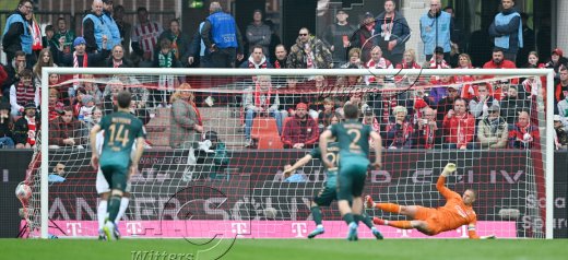 2:1 Tor, Elfmeter, Torschuetze Romano Schmid (Bremen), Torwart Marvin Schwaebe (Koeln)