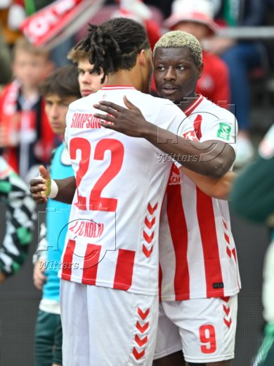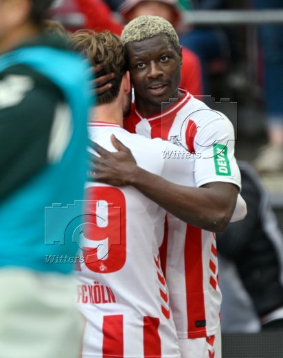 2:0 Tor, Jubel, v.l. Jahmai Simpson-Pusey, Torschuetze Ragnar Ache (Koeln)