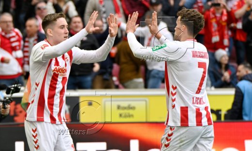 3:1 Tor, Jubel, v.l. Torschuetze Isak Johannesson, Luca Waldschmidt (Koeln)
