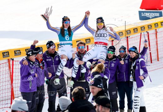 v.l. Kira Weidle-Winkelmann (Deutschland, 3. Platz), Emma Aicher (Deutschland) mit Team