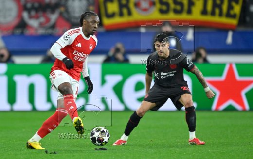v.l. Alejandro Grimaldo (Leverkusen), Bukayo Saka
