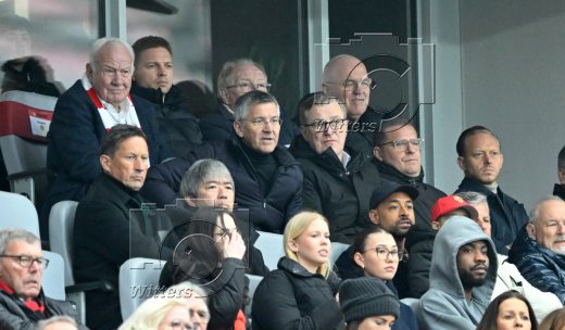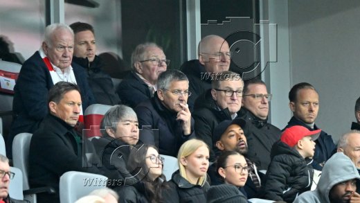 v.l. Walter Mennekes (2. Vizepraesident), Praesident Herbert Hainer (Bayern), Vorstandsvorsitzender Jan-Christian Dreesen (Bayern Muenchen), Sportvorstand Max Eberl (Bayern), Rouven Kasper (Vorstand Marketing und Vertrieb, Bayern), Trainer Roger Schmidt (u. l.)