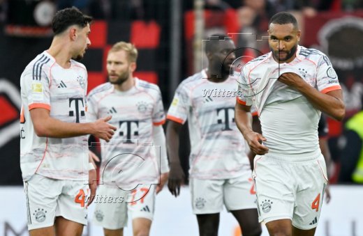 1:1 Tor, Jubel nach Videobeweis annulliert v.l. Aleksandar Pavlovic, Torschuetze Jonathan Tah (Bayern)