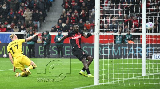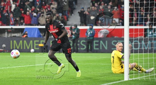 1:1 Tor, v.l. Marius Wolf, Torschuetze Victor Boniface (Leverkusen)