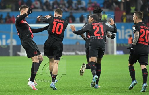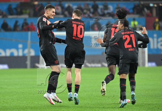 1:1 Tor, Jubel, v.l. Patrik Schick, Florian Wirtz, Amine Adli, Alejandro Grimaldo (Leverkusen)