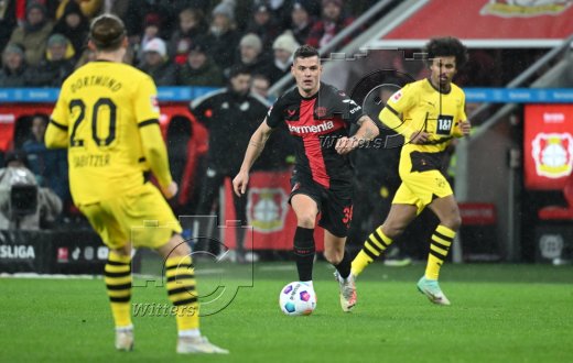 v.l. Granit Xhaka (Leverkusen), Karim-David Adeyemi
