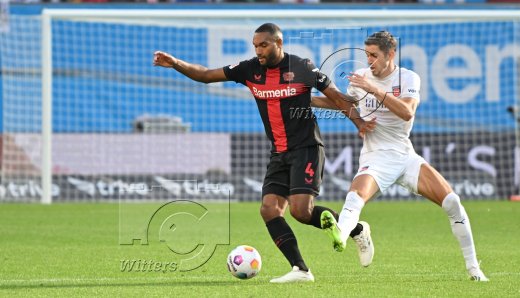v.l. Jeremie Frimpong (Leverkusen), Jonas Foehrenbach