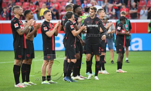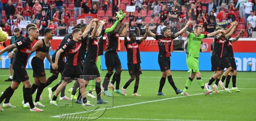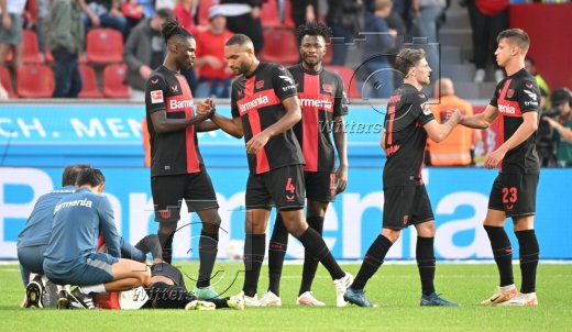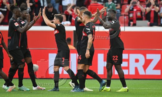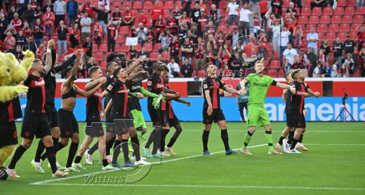 Schlussjubel v.l. Robert Andrich, Amine Adli, Florian Wirtz, Jonas Hofmann, Edmond Tapsoba, Josip Stanisic (Leverkusen)
